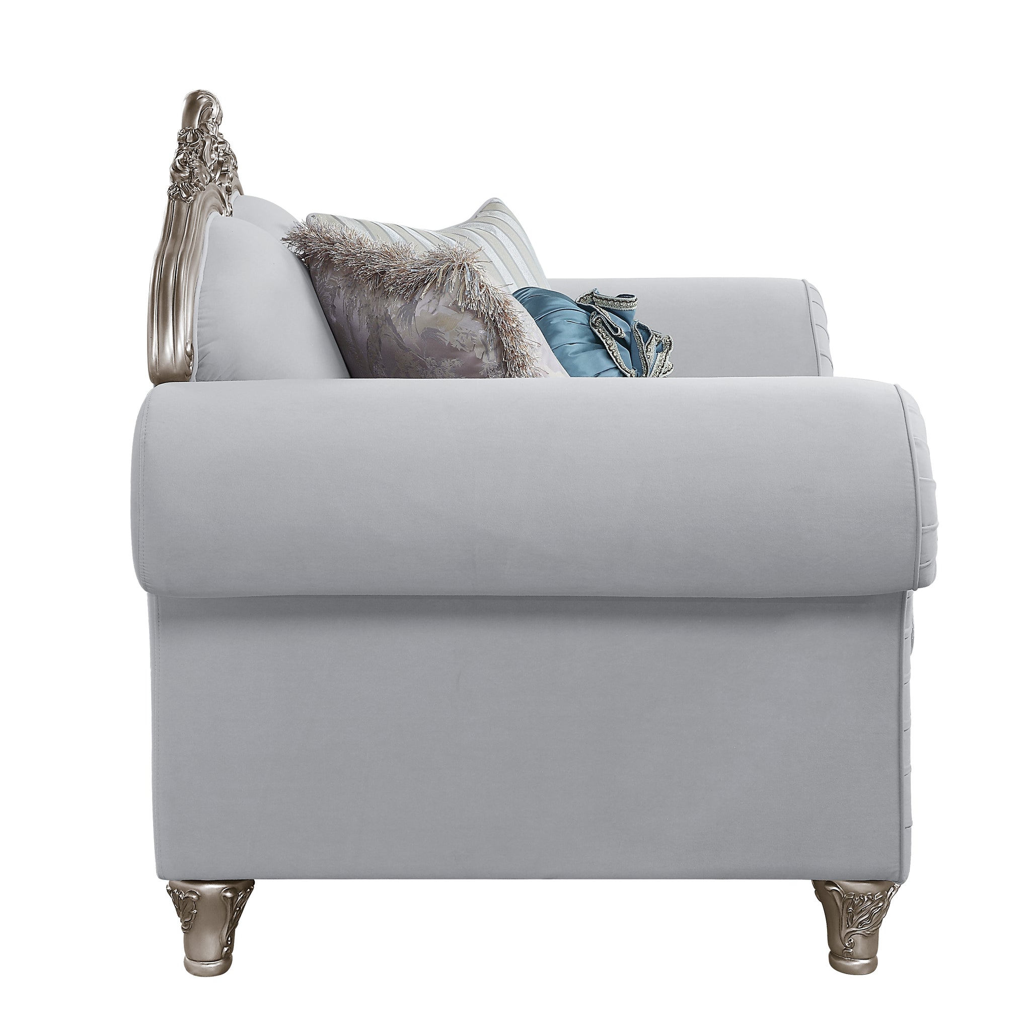 Pelumi Seat W 5 Pillows Light Gray Linen & Platinum Finish Lv01113 Light Gray Linen