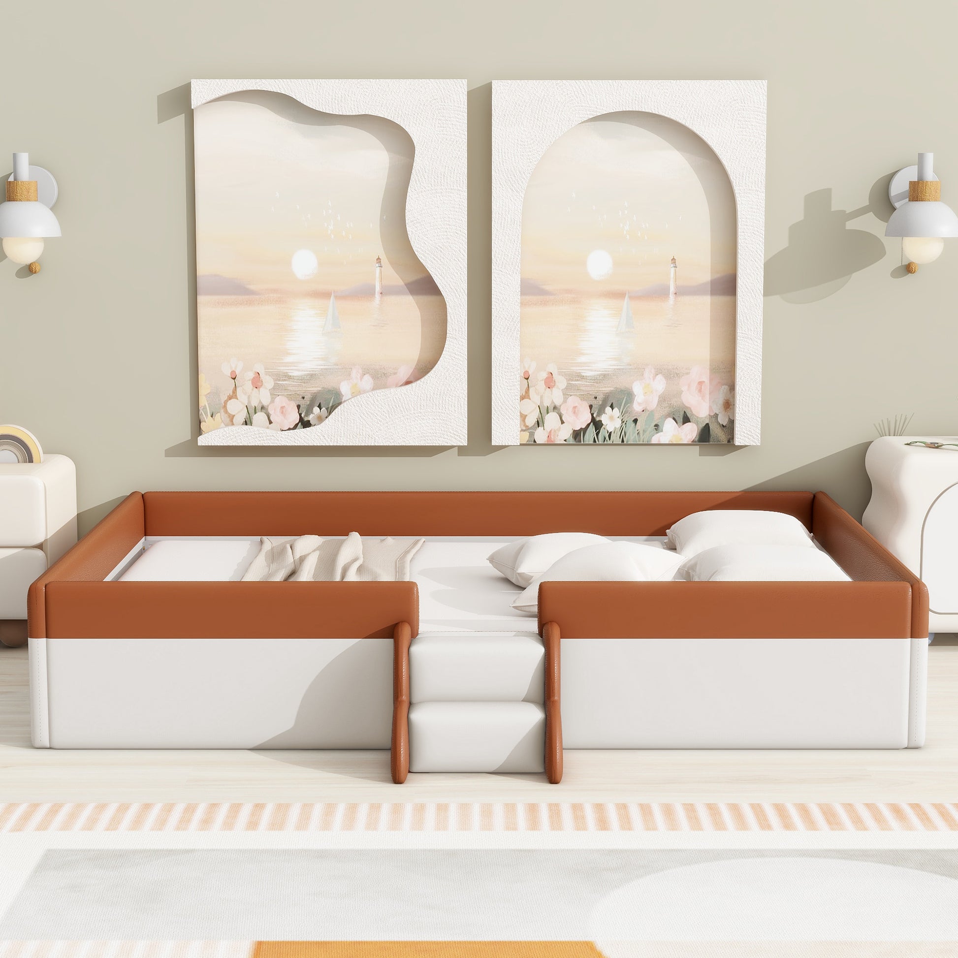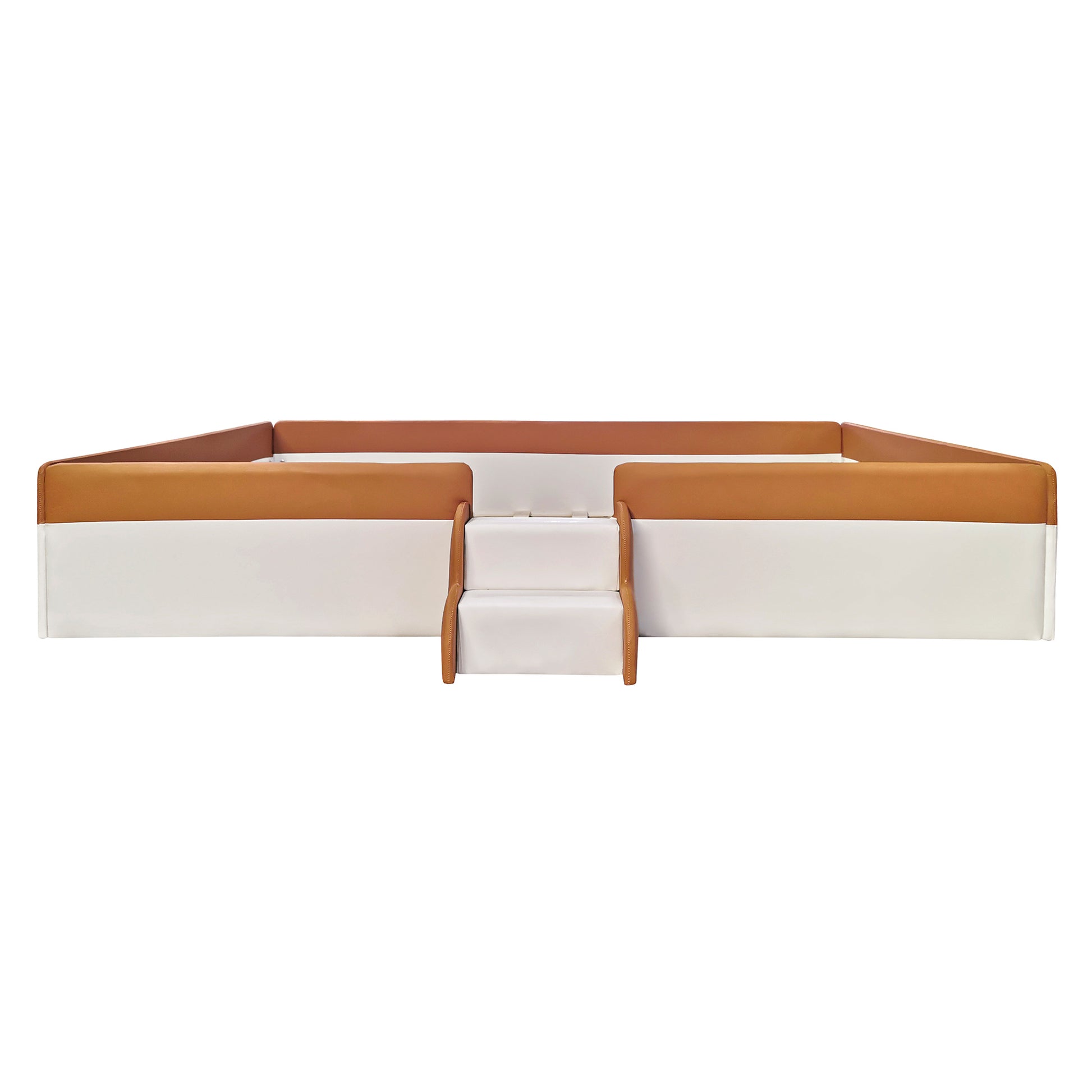 Queen Size Upholstered Daybed Frame With Fence And Stairs, Brown White Queen Brown White Mdf Lvl