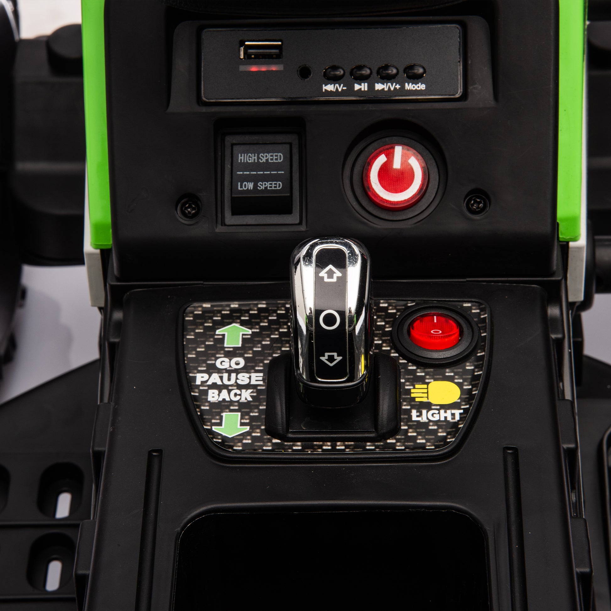 Ride On Tractor With Trailer,12V Battery Powered Electric Tractor Toy W Remote Control,Electric Car For Kids,Three Speed Adjustable,Power Display, Usb,Mp3 ,Bluetooth,Led Light,Two Point Safety Belt Green Plastic
