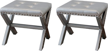 Introducing our modern chic vanity stool set of 2 the perfect addition to your bedroom or dressing room. Made with high-quality materials, this stool is both stylish and functional. The X-Base legs provide a sturdy foundation while adding a modern touch to the design.STYLISH Beauty ROUTINE: Our vanity chair elevates your daily beauty routine with its tufted soft linen seat, X-base & nail-head trim; It's the ultimate makeup stool for any fashion-forward individual.COMPACT & LIGHTWEIGHT: At 5 lbs, our accent chair is perfect as a standalone piece or a vanity bench; Compact, versatile, and easy to move around, you can perfectly fit this vanity seat to any room.MAXIMUM COMFORT: This comfy chair is upholstered in soft and luxurious fabric that feels great against the skin; It's an impeccable vanity stool chair for all your daily grooming needs.RELIABLE : This sturdy decorative chair provides style and comfort during long beauty sessions; With a solid wood X-shaped base & generously padded seat, it's the perfect sitting stool for any room.IDEAL MEASUREMENTS: Our vanity bench seat measures 19" L x 17" D x 17" H & has a capacity of 300 lbs; It is suitable as a cute vanity chair, entryway stool, or comfy accent chair for your bedroom. Listing Includes:- 2pc Vanity Stools Only.