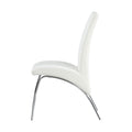 Set Of 2Upholstered Side Chairs, White And Chrome Solid White Rectangular Side Chair Chrome,Faux Leather