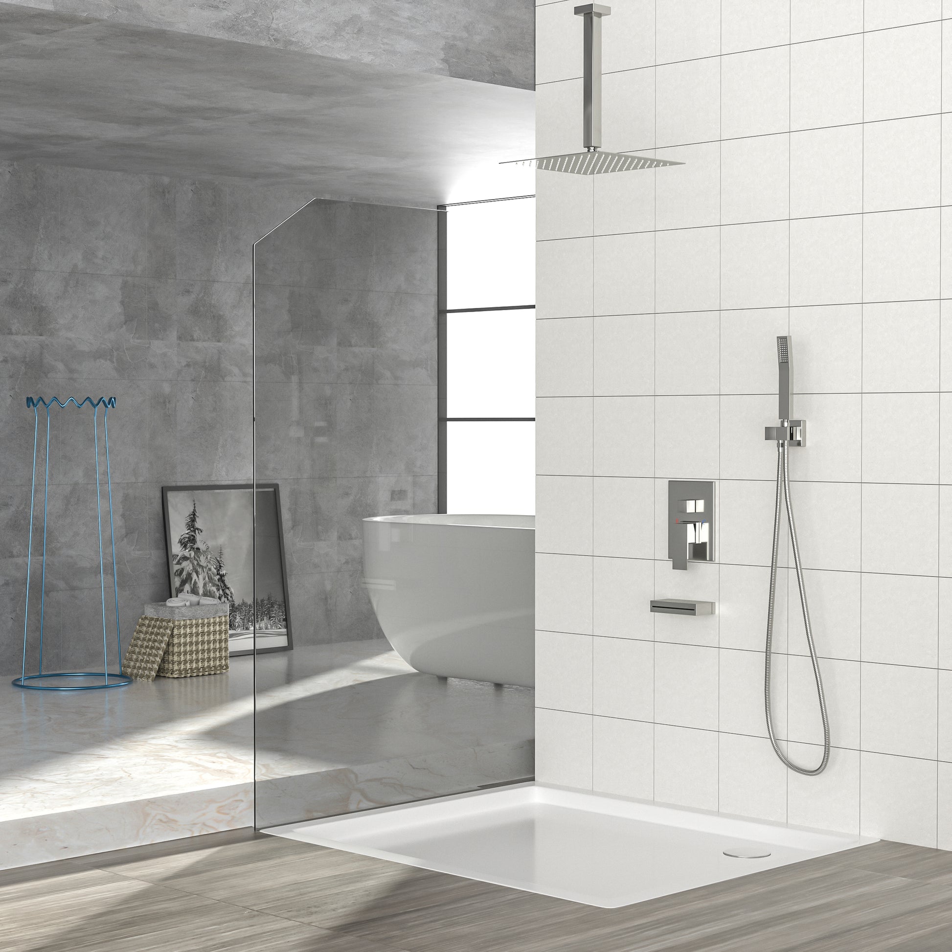 Shower System With Waterfall Tub Spout,12 Inch Ceiling Mount Square Shower System With Rough In Valve, Brushed Nickel Brushed Nickel Stainless Steel