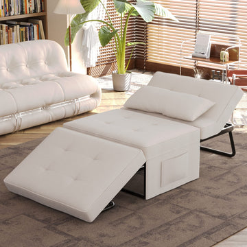 Sofa Bed,Chair Bed,Sleeper Couch,4 In 1 Multi Function Folding Ottoman Bed With Slide Storagepocket For Living Room,Bedroom,Hallway,Beige Beige Espresso Bedroom Mid Century Modern Oak Upholstered Fabric