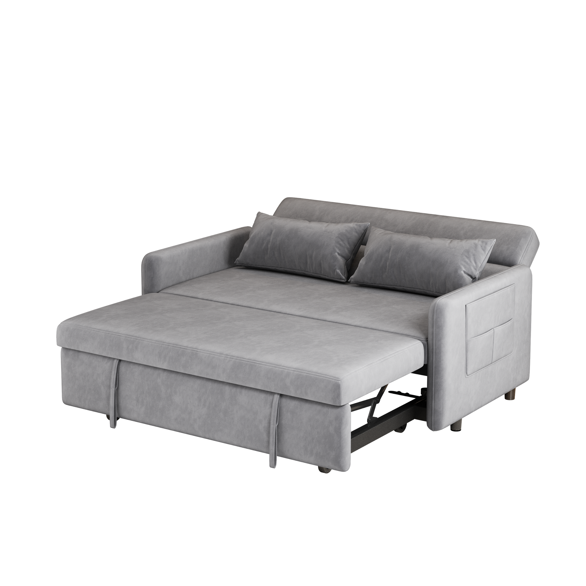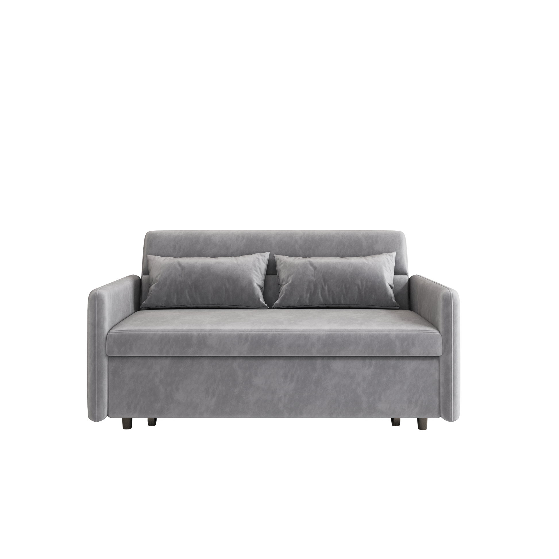 Sofa Pull Out Bed Included Two Pillows 54" Grey Velvet Sofa For Small Spaces Gray Altay Velvet