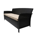 • This three seater sofa is the perfect addition to any backyard or patio. Featuring a sturdy wicker construction over a steel frame, this sofa is not only well built, but stylish as well. With slightly curved arm rests for a hit of flair along with a seat cushion for maximum comfort, this safe is a must have. Enjoy it in your back yard today.