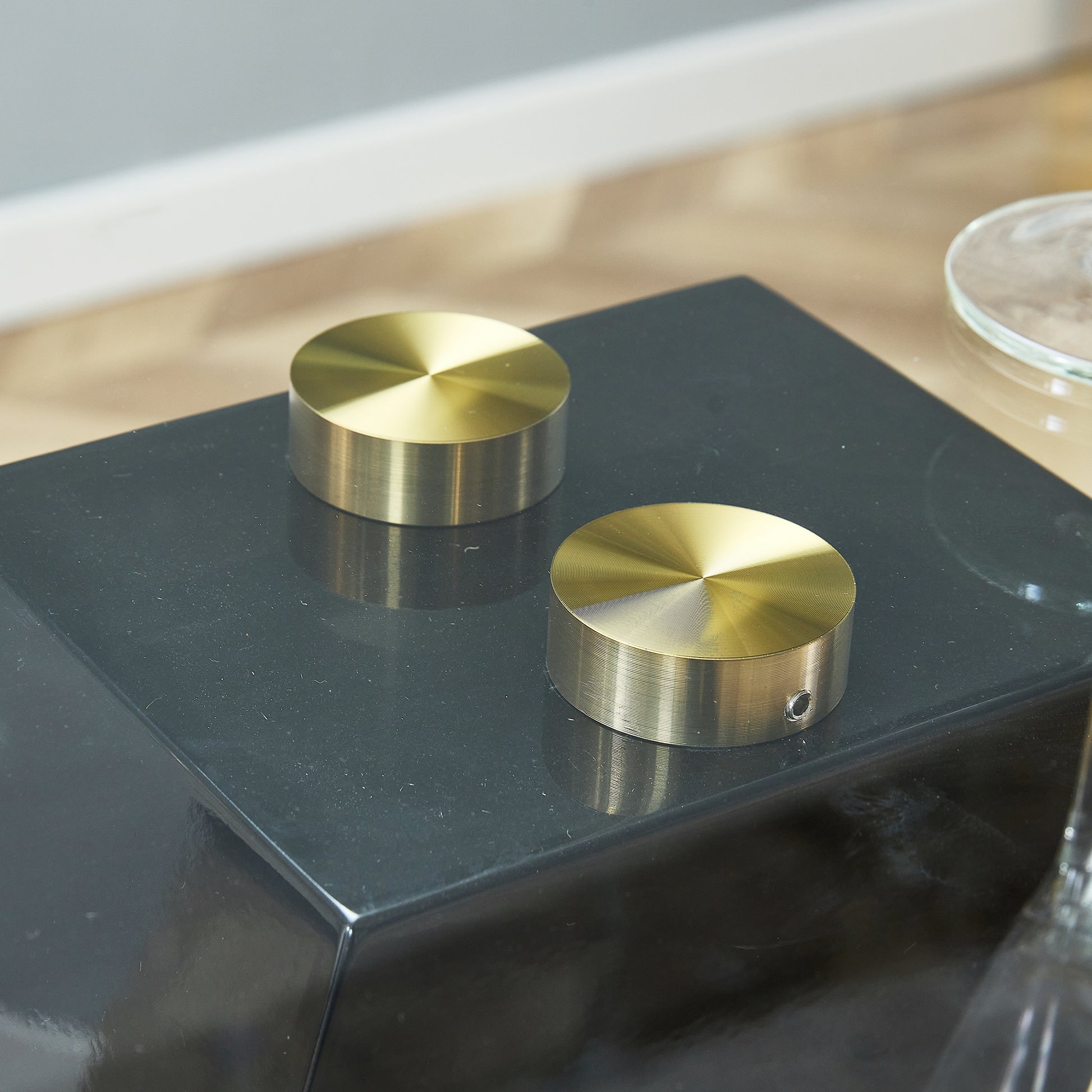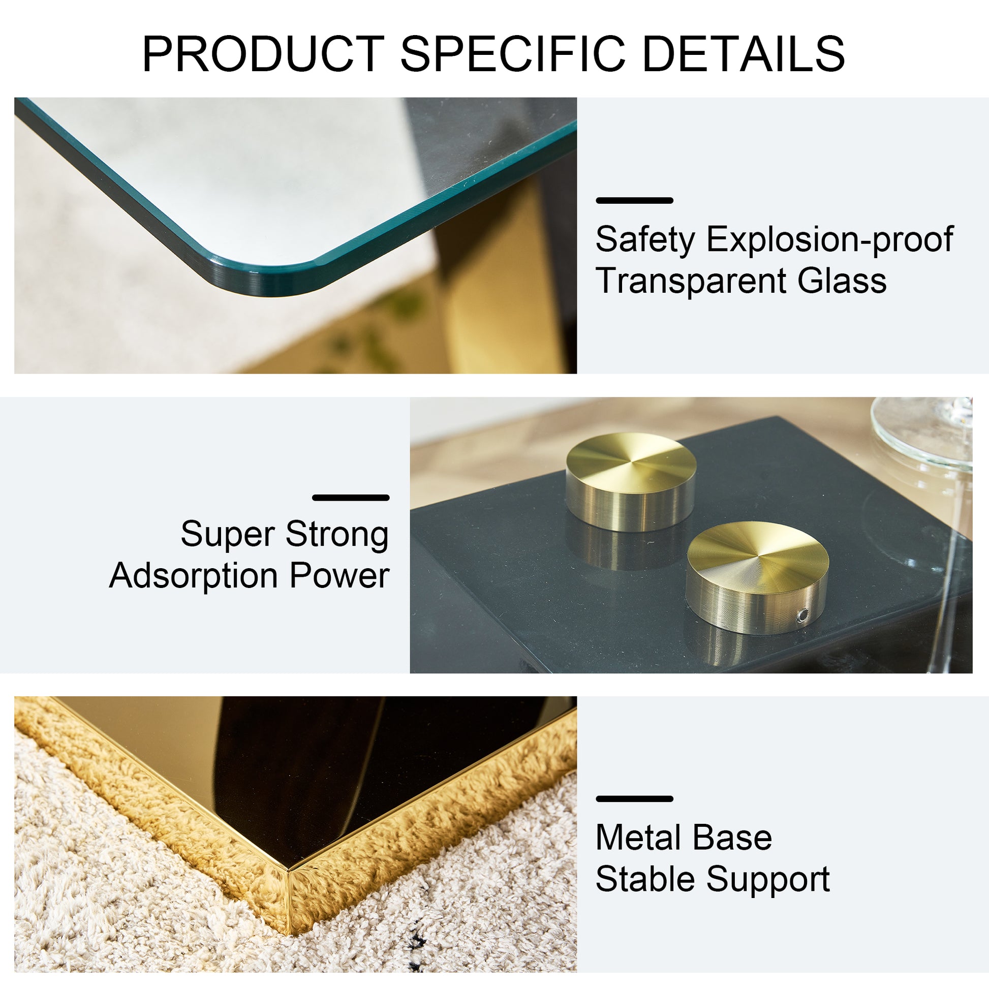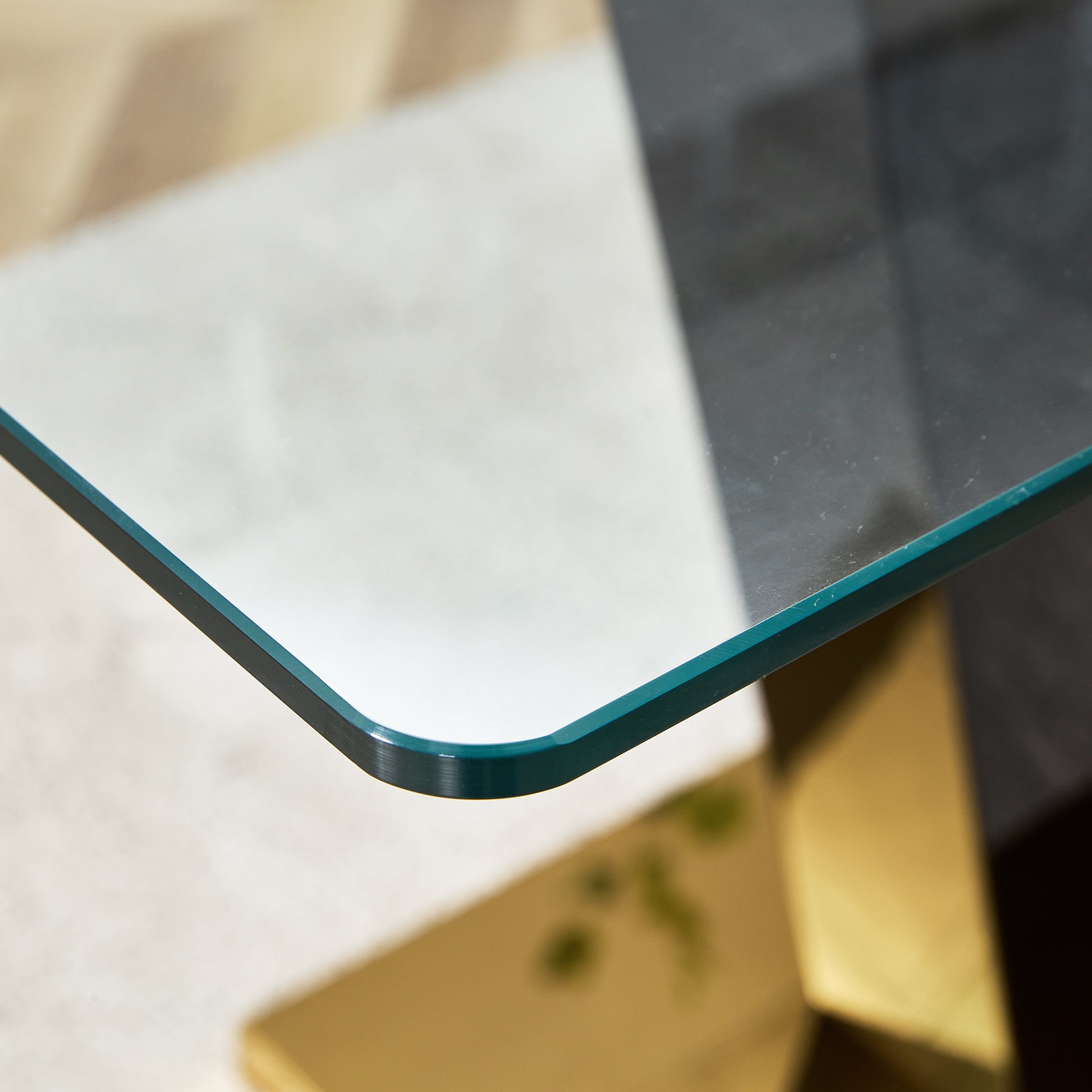Table And Chair Set,Large Modern Minimalist Rectangular Glass Dining Table For 4 8 With 0.4" Tempered Glass Tabletop And Mdf Slab V Shaped Bracket, Pu And Gold Legs Of The Chair. Black Grey Seats 4 Tempered Glass