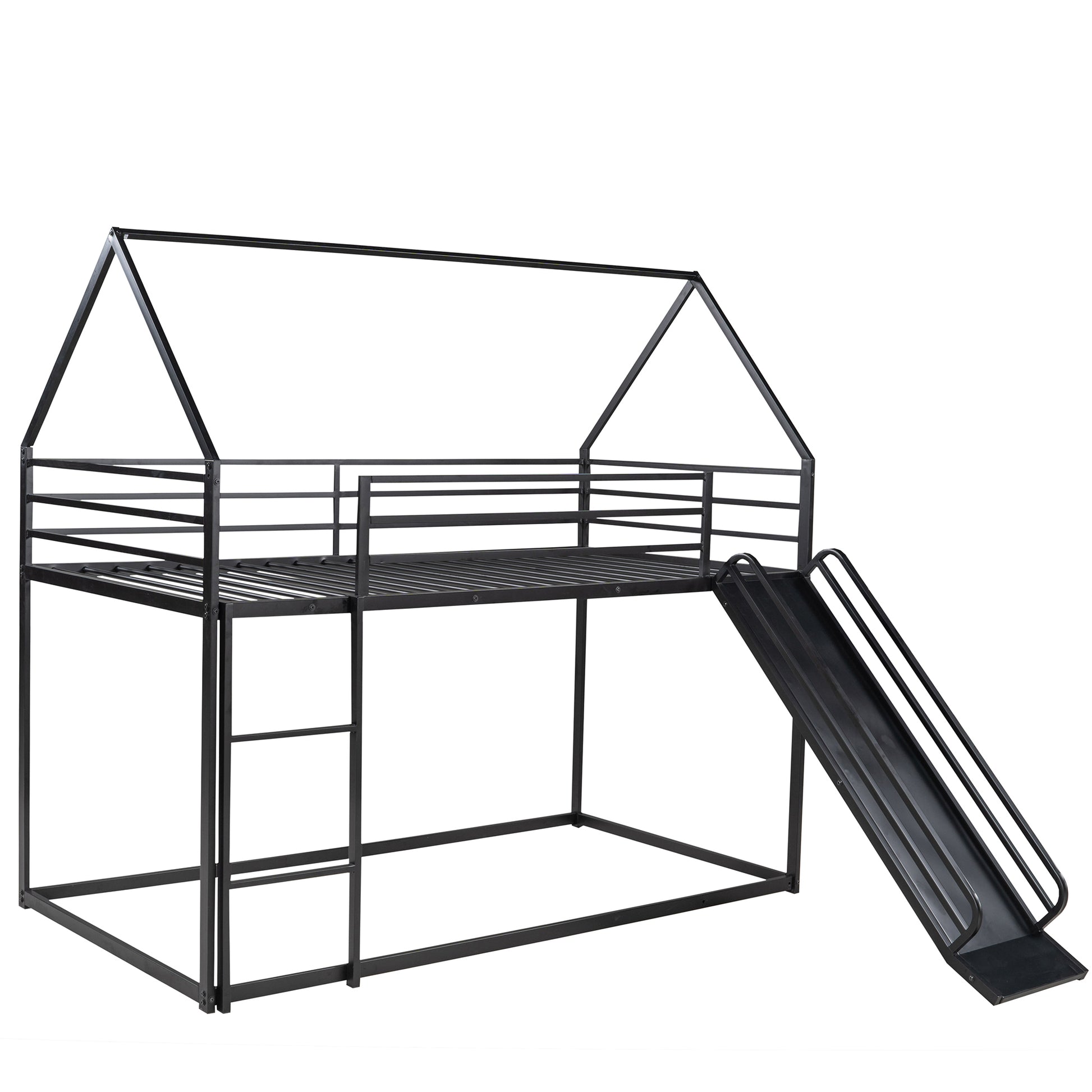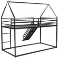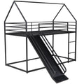 Twin Over Twin House Bunk Bed With Ladder And Slide,Black Black Metal