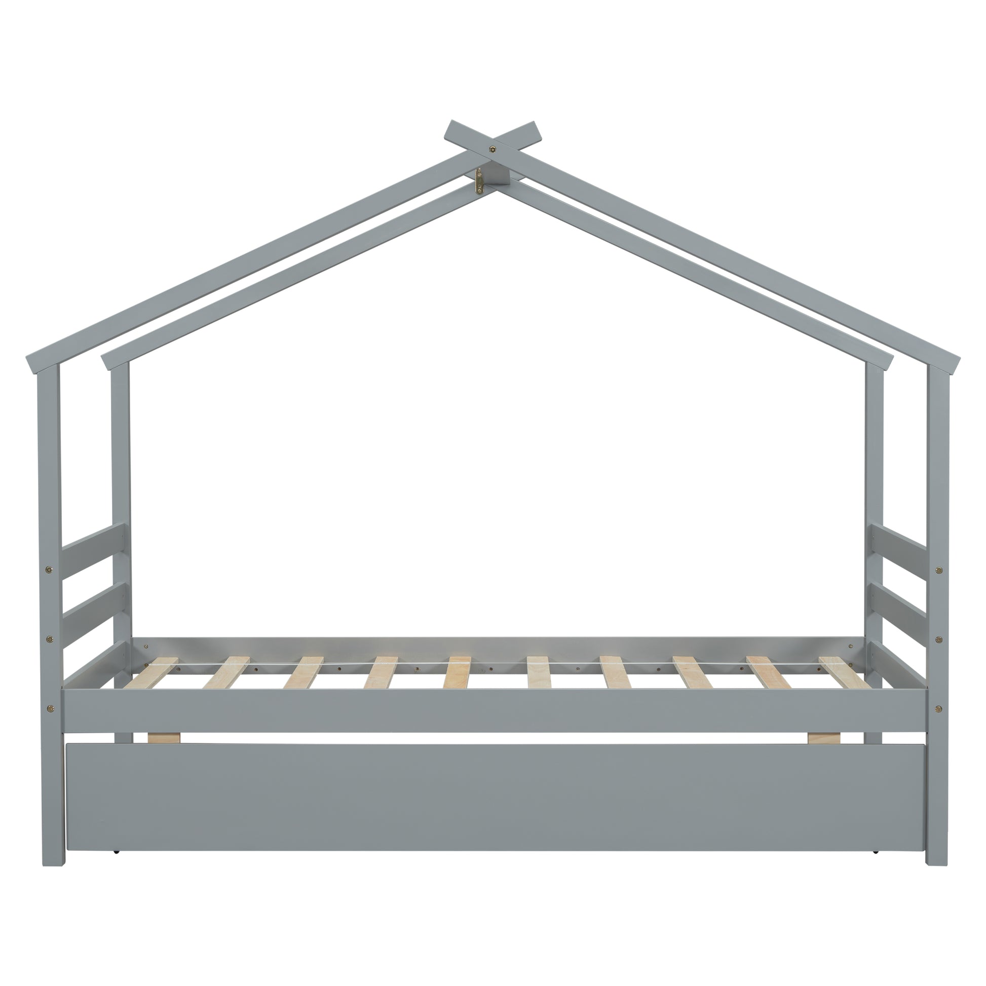 Twin Size House Shaped Bed With Trundle,Grey Twin Grey Wood Bedroom American Design Pine Bed Frame Pine