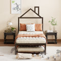 Twin Size Metal Platform Bed With Twin Size Trundle,House Shaped Headboard Design, Black Twin Black Metal
