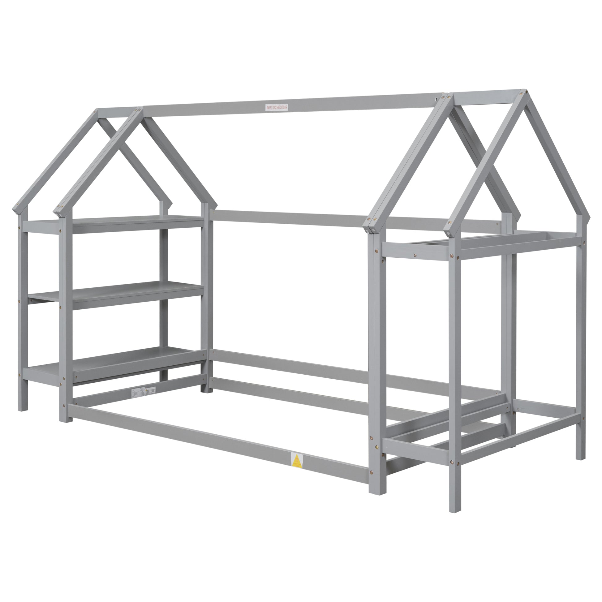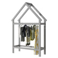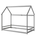 Twin Size Wood House Bed With Storage Shelf And Hanger ,Kids Bedroom Set,Grey Twin Grey Wood Bedroom American Design Pine Pine