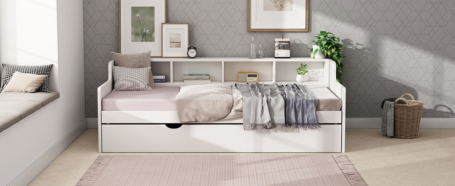 Twin Size Wooden Day Bed With 3 Trawers For Guest Room, Small Bedroom, Study Room, White Box Spring Not Required Twin White Wood White Pine Daybeds Solid Wood Mdf