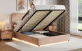 Upholstered Platform Full Size Hydraulic Storage Bed, Lift Up Storage Bed With Rgb Led Light, Bluetooth Speaker, No Box Spring Needed, Lychee Velvet,Pink Full Pink Velvet Fabric Metal
