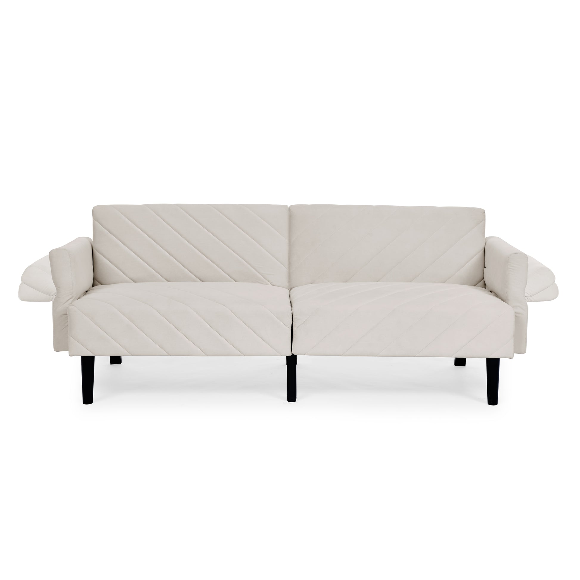 Velvet Futon Couch Convertible Folding Sofa Bed Tufted Couch With Adjustable Armrests For Apartment Beige Velvet Metal Primary Living Space Split Back Eucalyptus Square Arms Foam 3 Seat