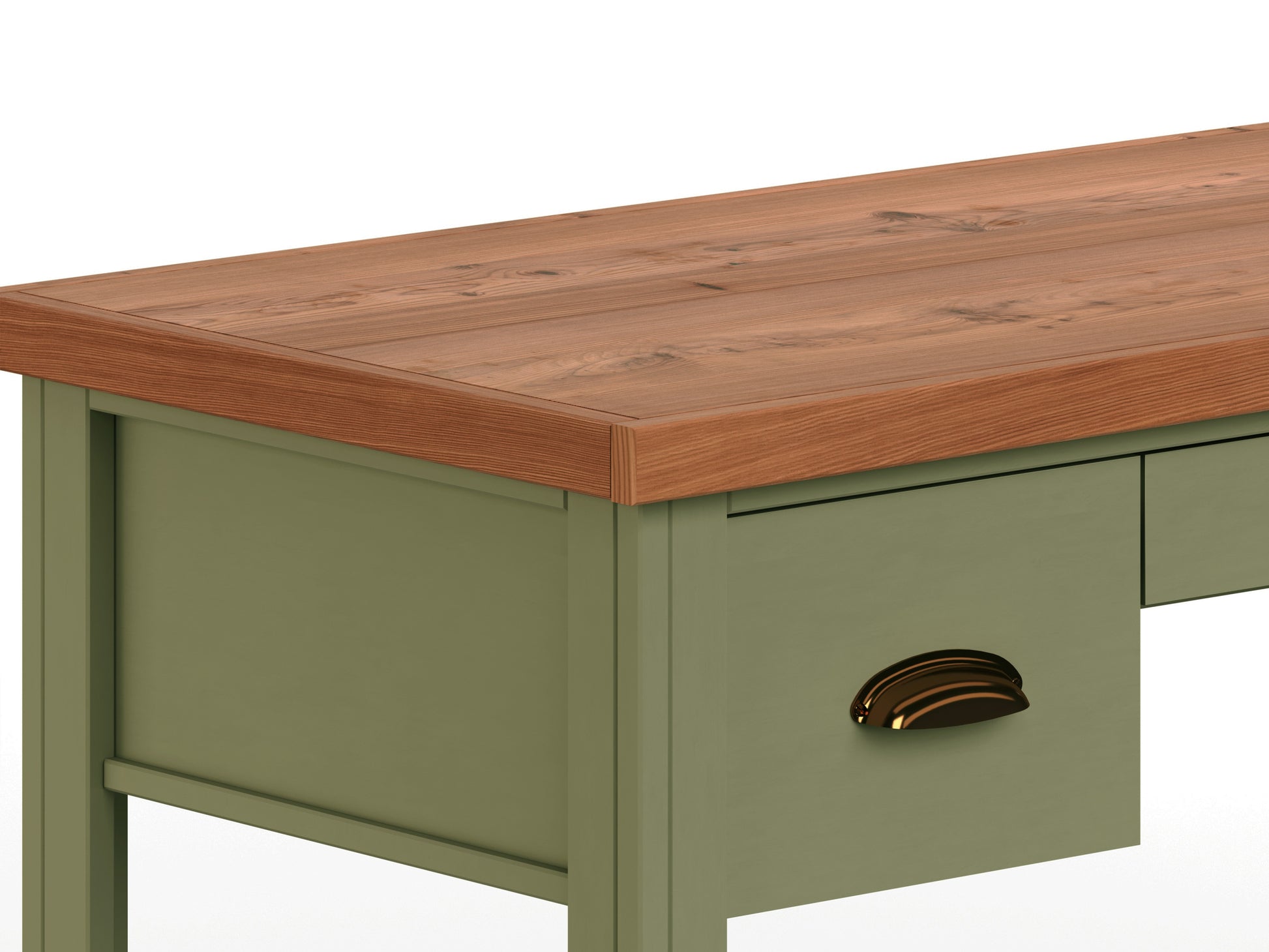 Vineyard 53 Inch Writing Desk, No Assembly Required, Sage Green And Fruitwood Finish Green Keyboard Tray Writting Desk Office Coastal,Farmhouse Freestanding Poplar Rectangular Drawers Desk Wood