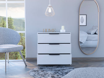 Washington Three Drawer Dresser White White Bedroom American Design,Modern Pine Pine Engineered Wood
