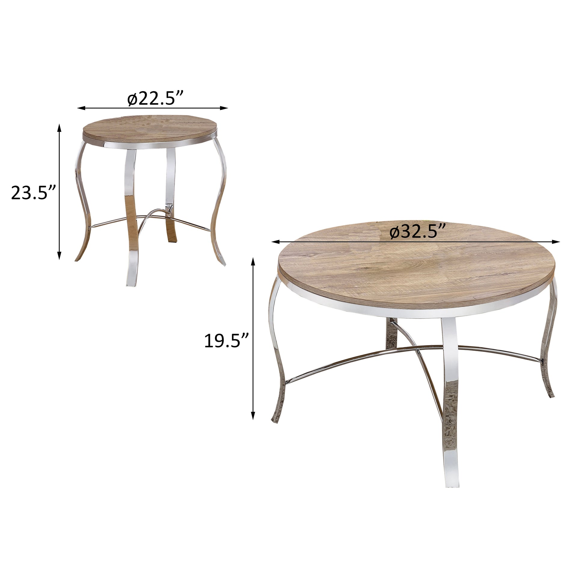 Weathered Light Oak And Chrome 3 Piece Occasional Set Oak Silver Primary Living Space Contemporary,Traditional Round Coffee & End Tables Round Wood Metal