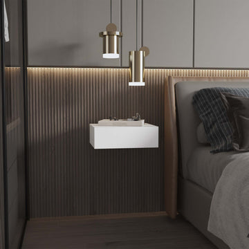 White Wall Mounted Floating Nightstand White White 1 Drawer Bedroom Floating Space Saving White Wood