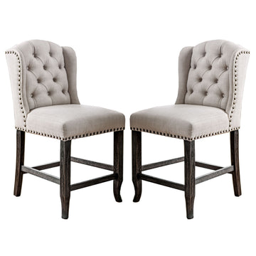 Wooden Counter Height Wingback Chair, Ivory And Black Set Of 2 Antique Gray Wood Fabric