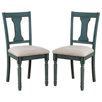 Name: Wooden Side Chair with Open Chiseled Design Back, Set of 2, Blue